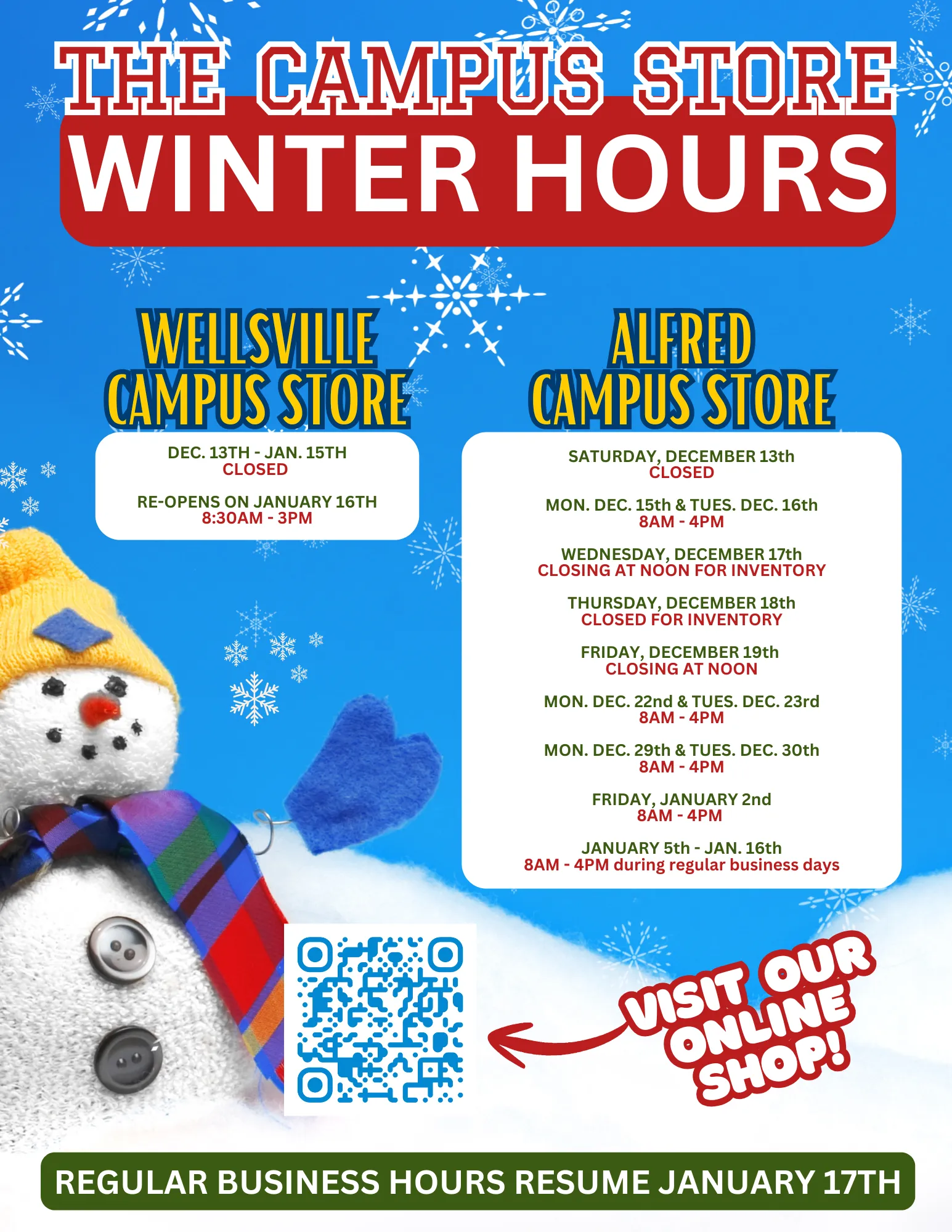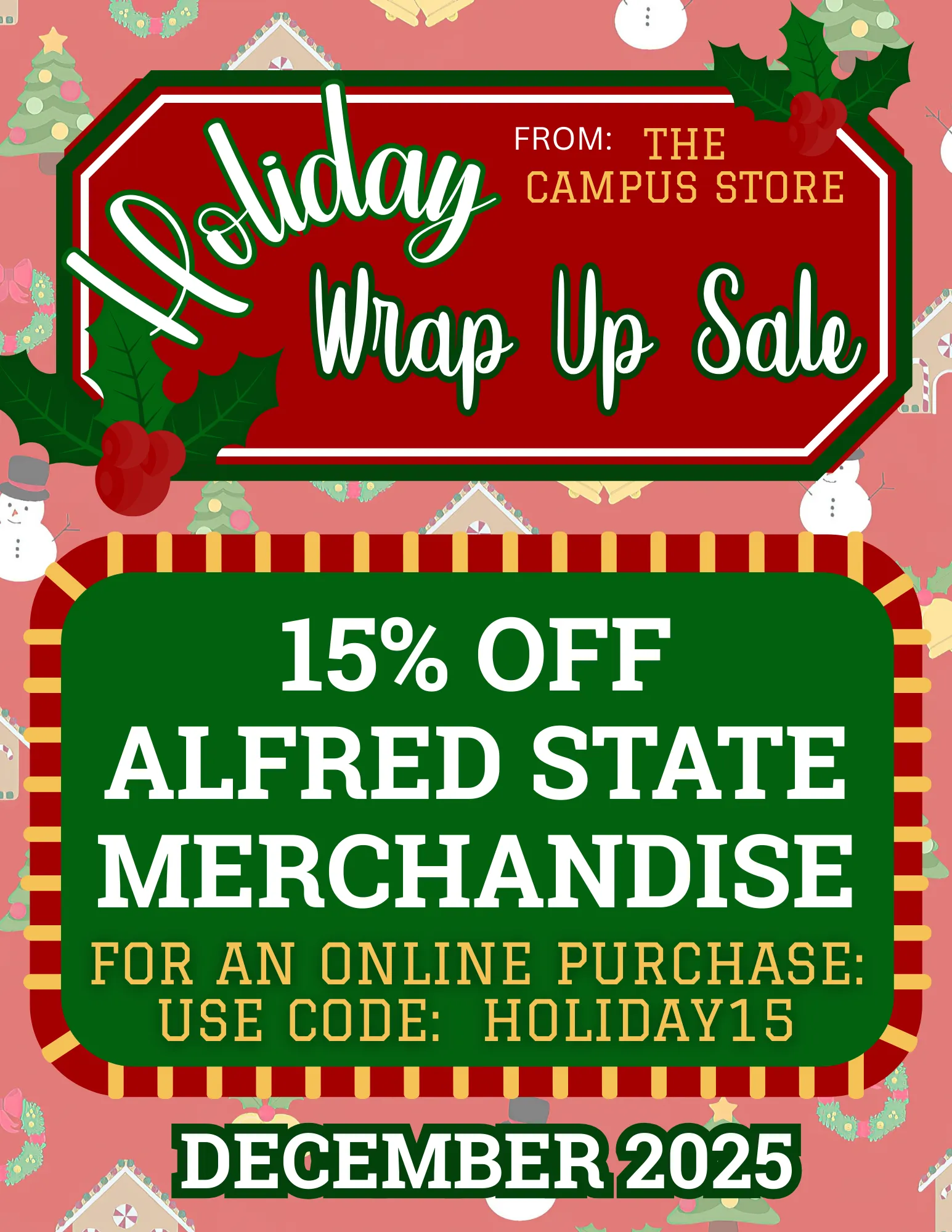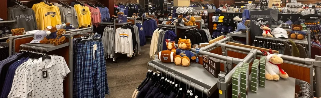 When it comes to course materials and Alfred spirit gear, we’re here to make learning more affordable and convenient. Stop by the store or visit us online to find everything you need for class, plus supplies and gear to show your Alfred State pride.