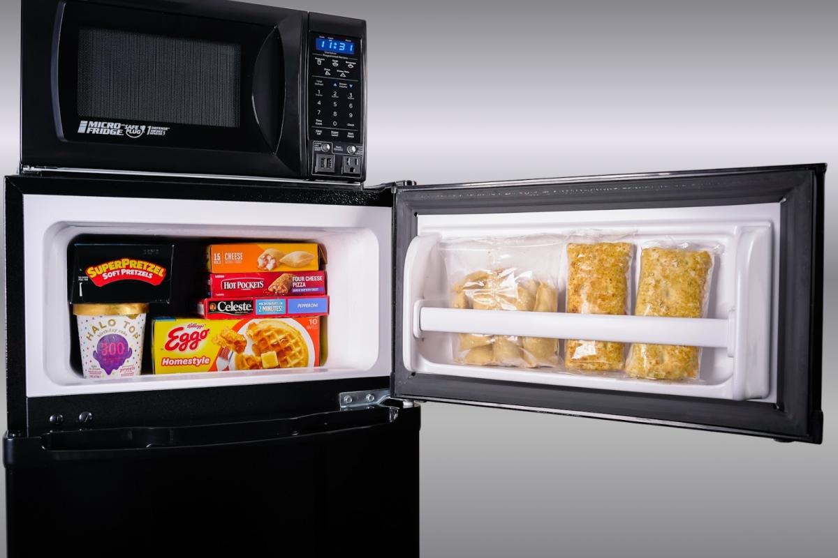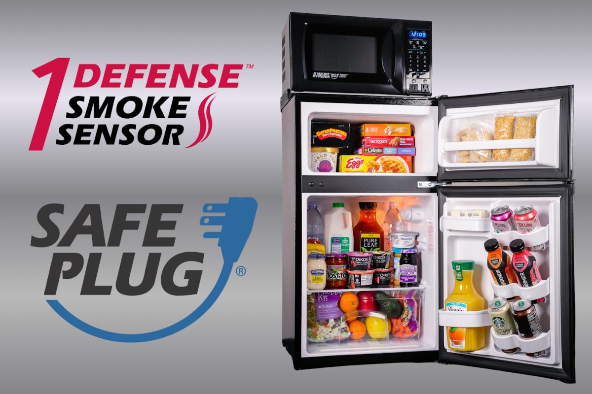 The MicroFridge© is a microwave oven, refrigerator, and a zero-degree freezer unit that includes a 1st defense smoke sensor, utilizes energy efficient technology, and contains two USB Ports and one regular outlet for optimal functionality... Perfect for any dorm room!