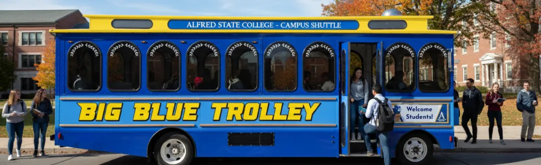 The Wellsville Shuttle picks up and delivers students from the Alfred Campus to the Wellsville Campus each day. Curriculum specific transportation for Wellsville is available and arranged with the academic departments. For example, Culinary students may need a bus on certain days for late-night culinary labs or special events, please have instructors send those requests to the Transportation Department at Transportation@alfredstate.edu