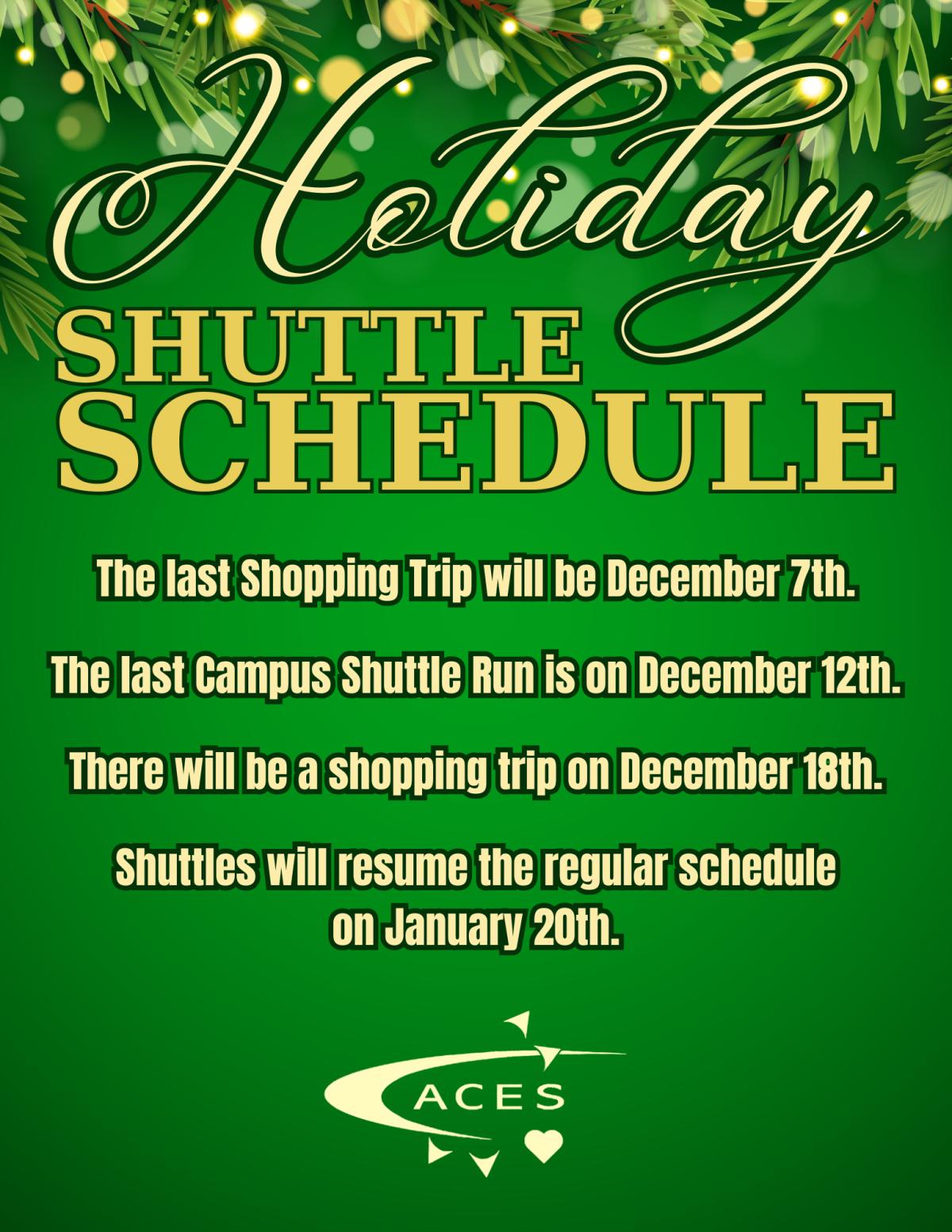 Holiday Shuttle Schedule